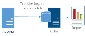 Cyfin needs access to the Apache log files in order to run reports. You can either FTP them to the Cyfin machine, or put them on a mounted network drive that Cyfin can access. We recommend scheduling the log files to be FTPed to the Cyfin machine for the least amount of strain on your network.